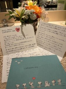 Nさん 46歳 茨木市 46歳で出産したので周りの人達が驚きもとても喜んでくれます 拝啓 厳しい残暑が続いておりますが、皆様いかがお過ごしですか? 通院中は大変お世話になりました。 お礼のご挨拶が遅くなり、また引っ越し前に伺えず申し訳ございません。 早いもので先月息子が1歳の誕生日を迎えました。 […] 続きを読む>>