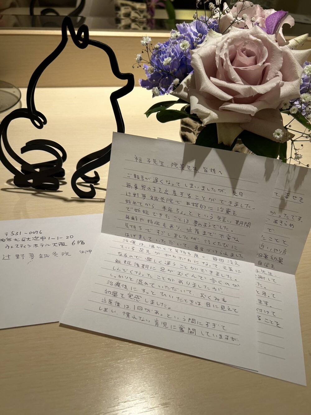 年齢や持病もあり、出産まで不安な気持ちですごしましたが、行くたびにはげましていただいて、勇気づけられました